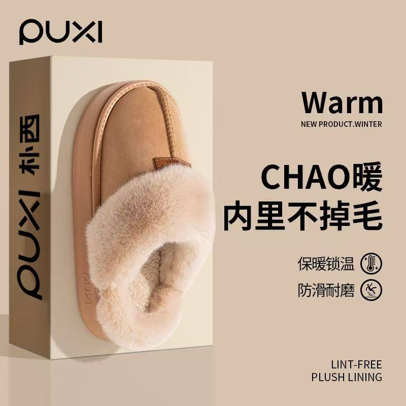 朴西新款星月棉拖鞋女毛绒增高厚底防滑简约男士秋冬季外穿棉拖鞋