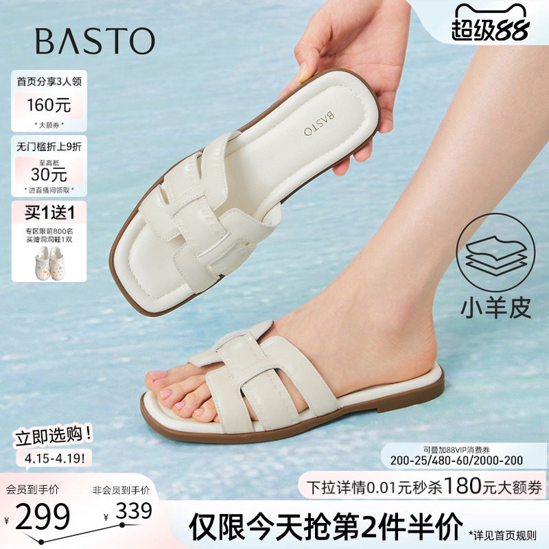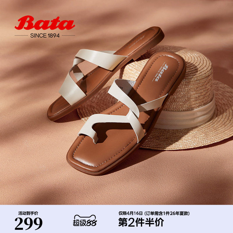 百思图2026夏季新款复古平底一字拖舒适休闲外穿女拖鞋USI34BT6