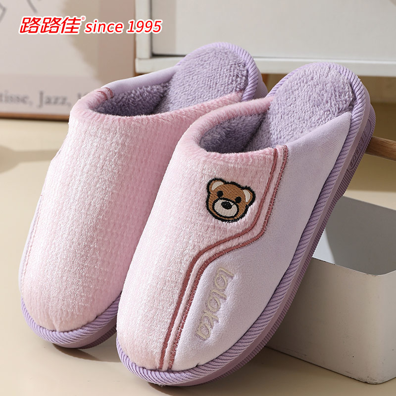 朴西苹果头棉拖鞋女可爱冬季保暖加绒情侣家居室内拖鞋男毛毛拖