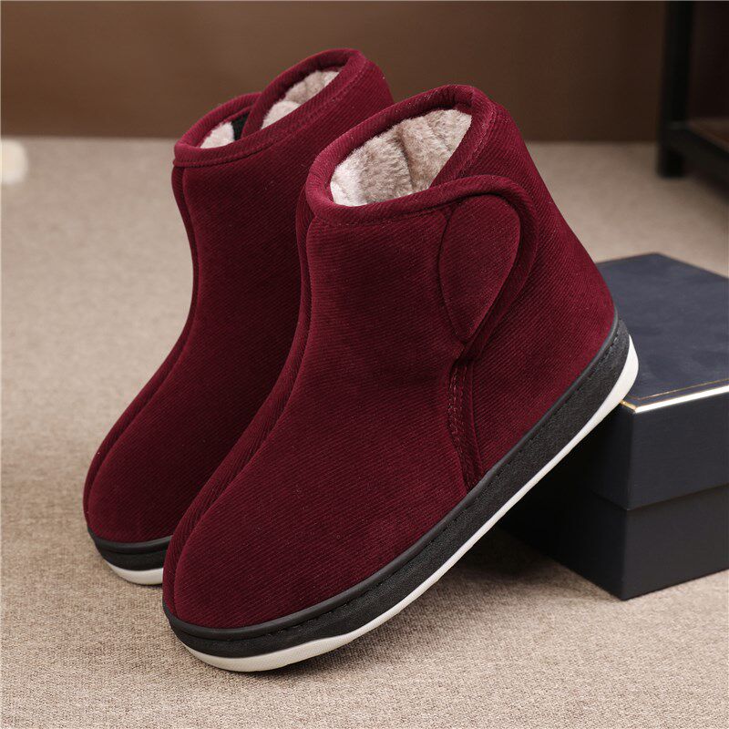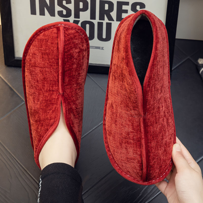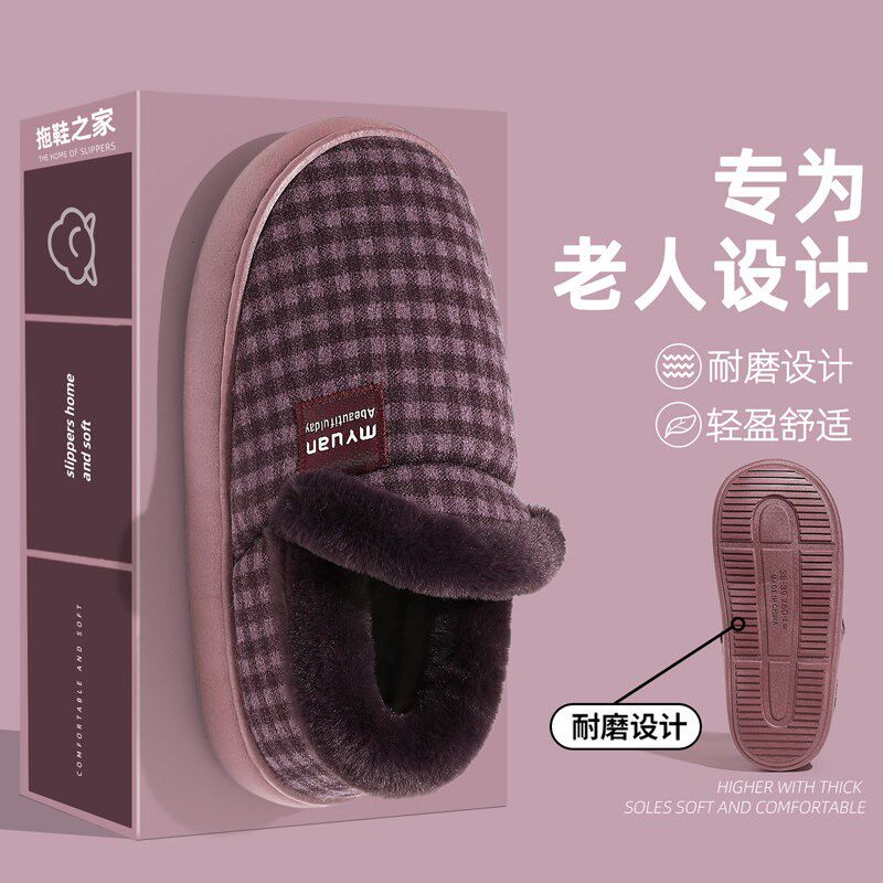 冬季男女款加绒加厚保暖包跟棉拖鞋居家外穿中老年人防滑厚底棉鞋