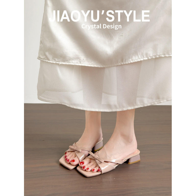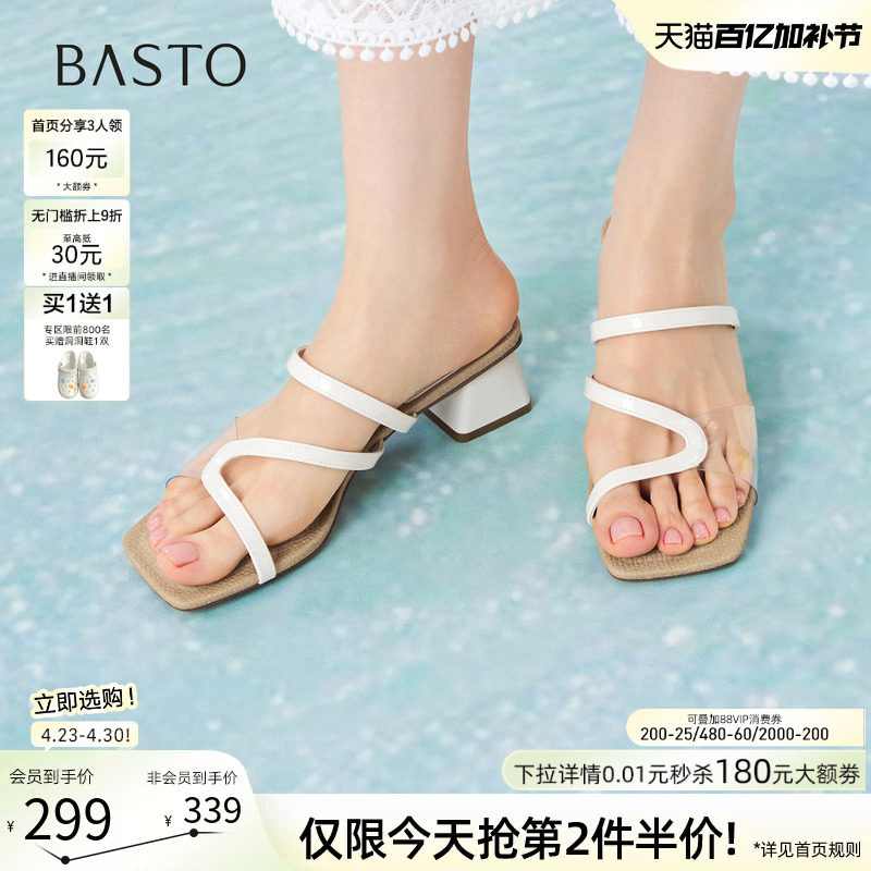天美意夏季新款拖鞋度假优雅百搭气质法式女一字拖KT075BT5