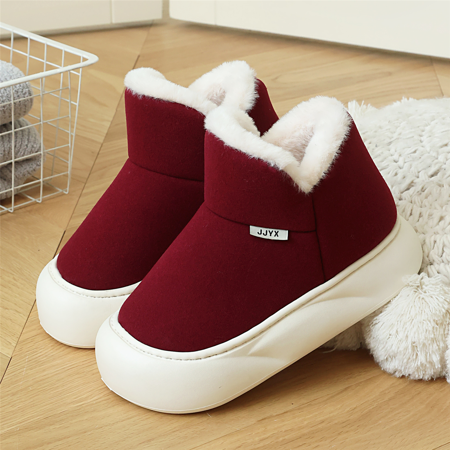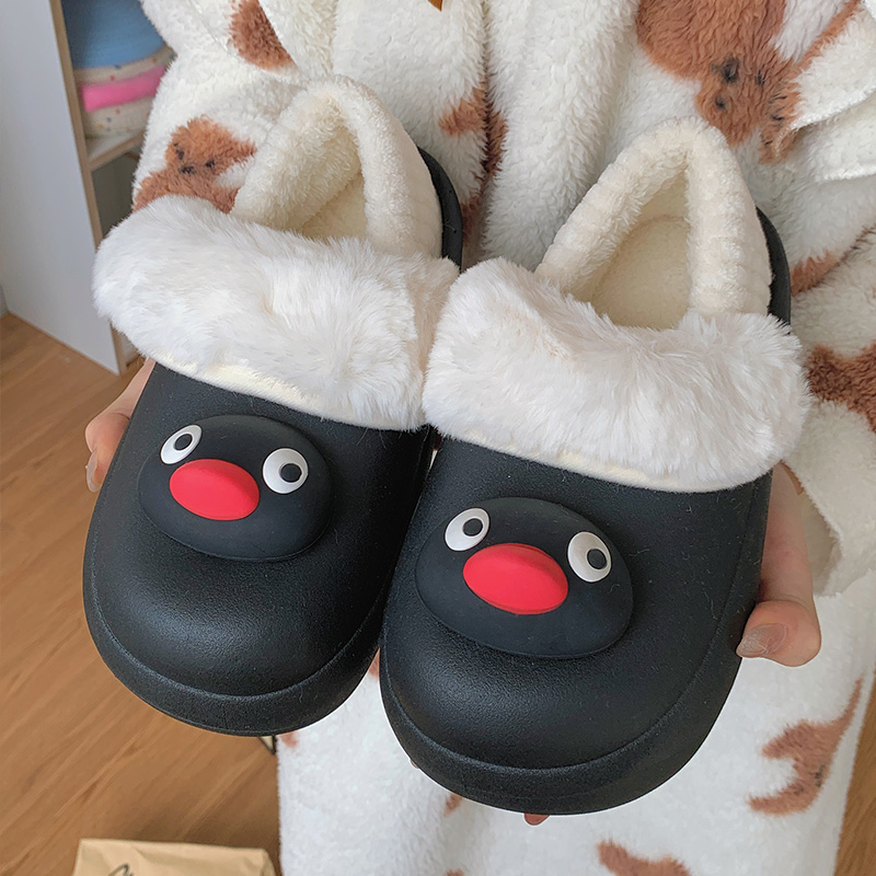 朴西红鼻子棉拖鞋女秋冬季室内家居保暖防滑加厚加绒可爱毛毛拖鞋