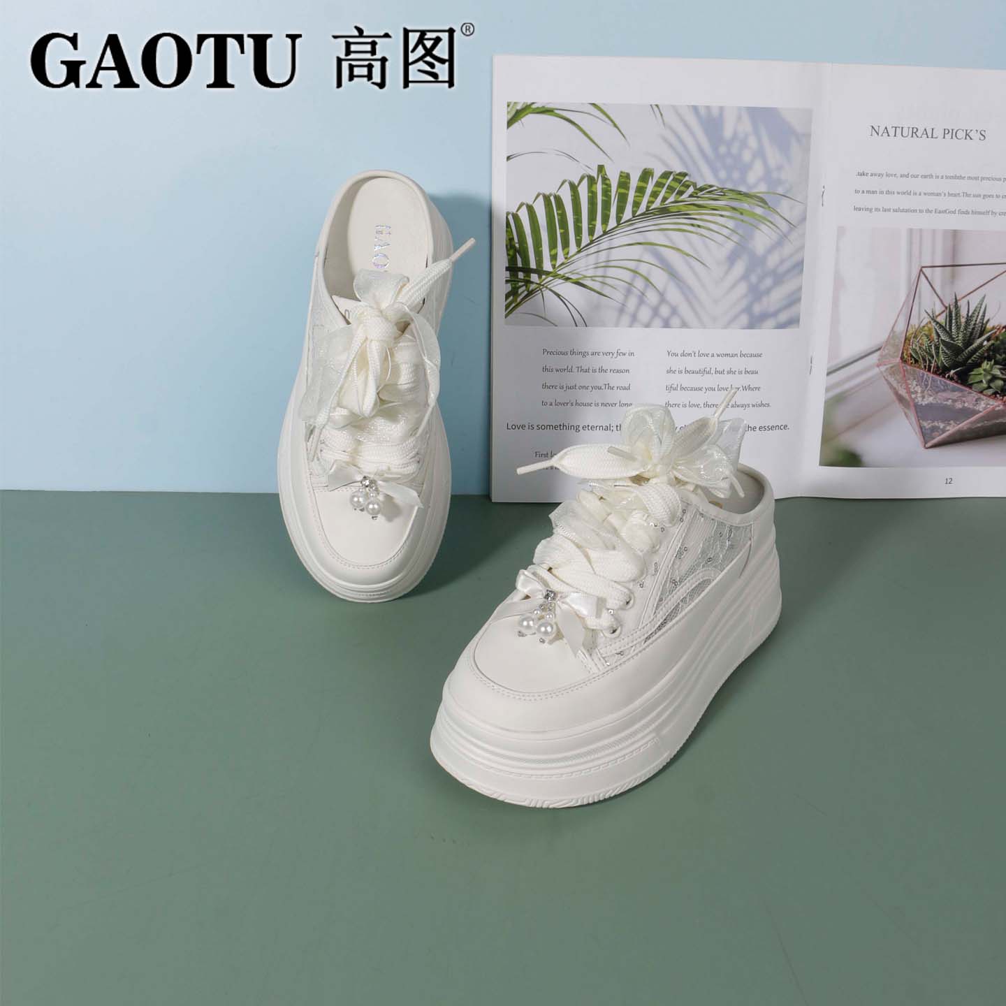 高图休闲半拖鞋女2025夏季新款蕾丝网面甜美舒适半拖鞋6566-21251