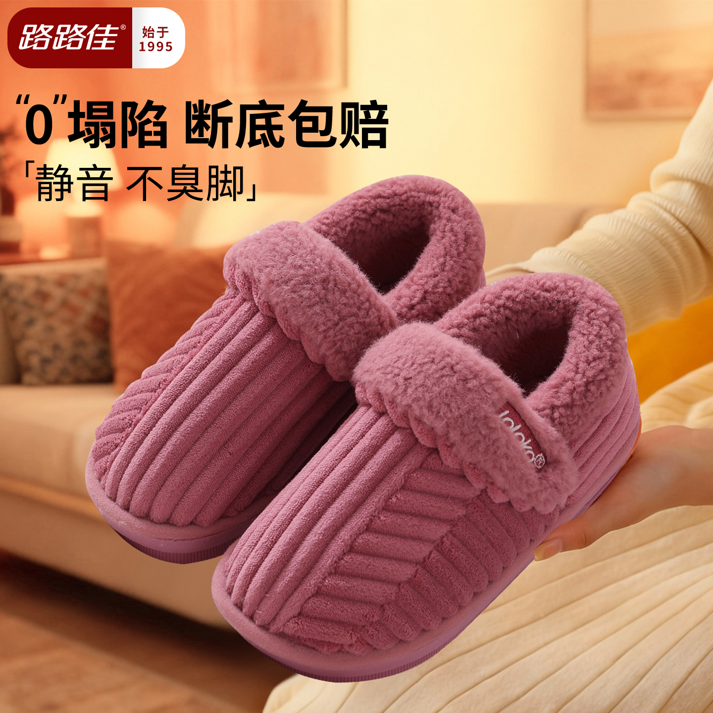 路路佳包跟棉拖鞋女老人2025新款冬季防滑保暖居家实心厚底棉鞋秋