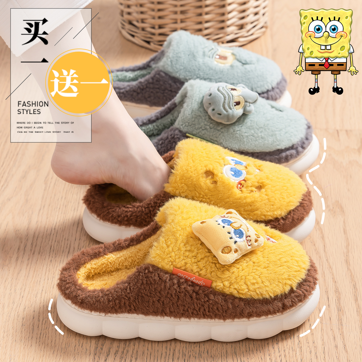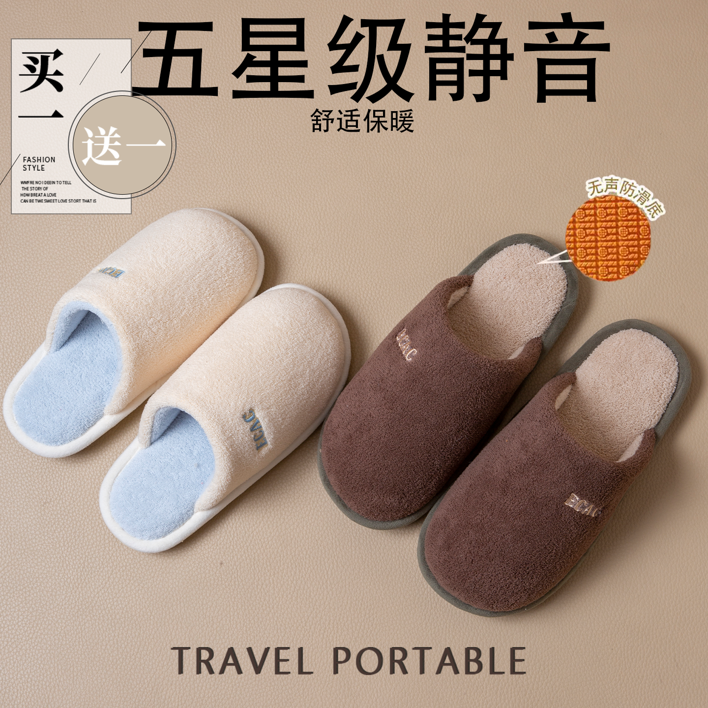 买一送一棉拖鞋女冬季新款家居防滑2024新款居家用加绒毛毛拖鞋男