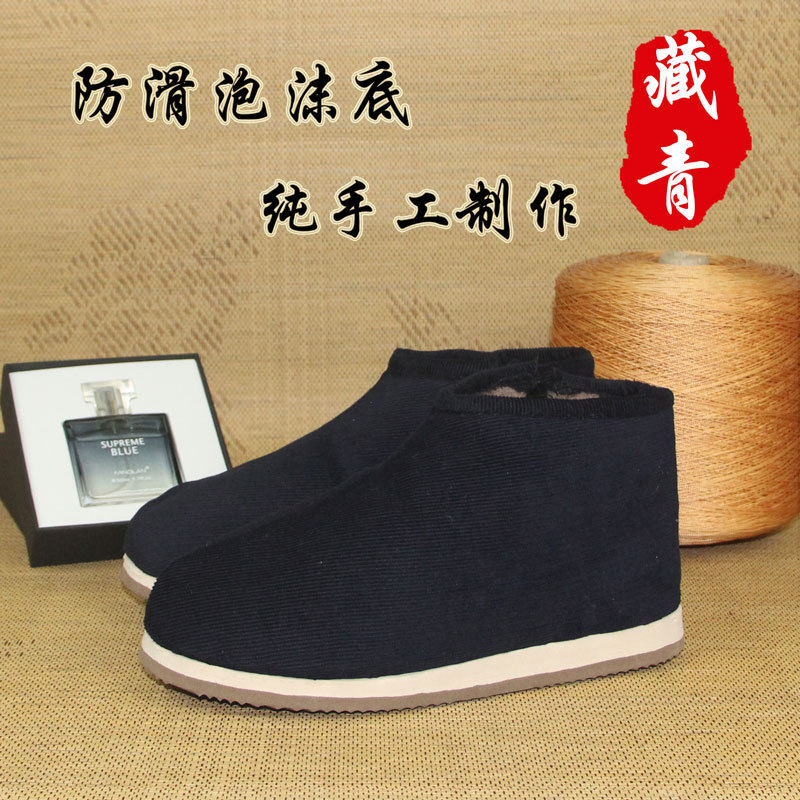 冬季加绒加厚男女高帮保暖棉鞋居家外穿包跟老年人防滑厚底棉拖鞋