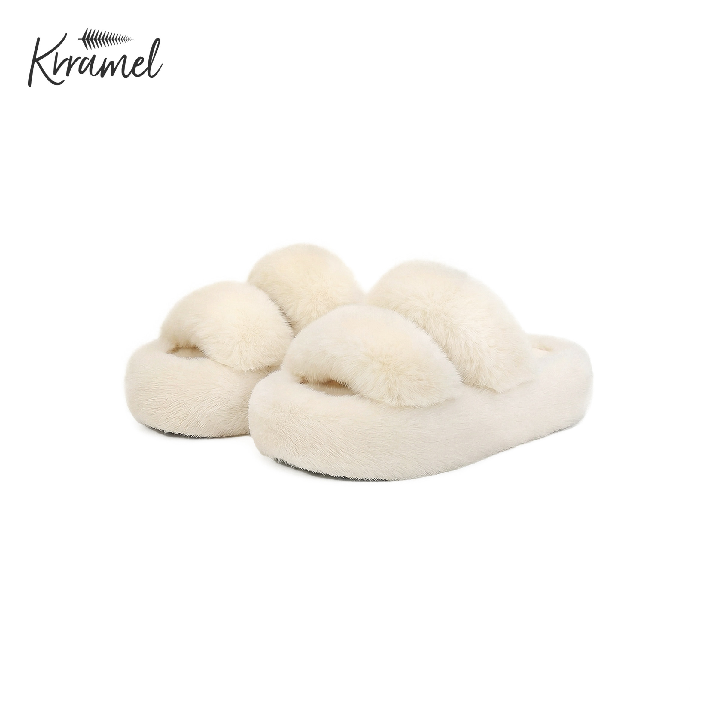 KRRAMEL毛拖鞋女外穿毛绒拖鞋女厚底居家室内防滑保暖棉拖鞋秋冬