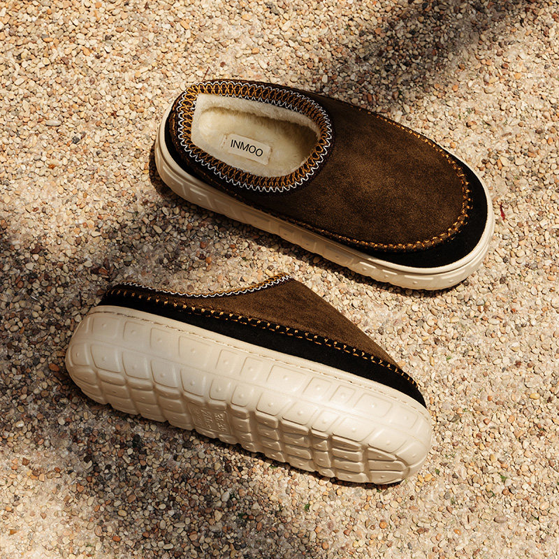 3.0CM加厚加绒情侣冬季厚底防滑毛绒包头美拉德色系居家棉拖鞋户