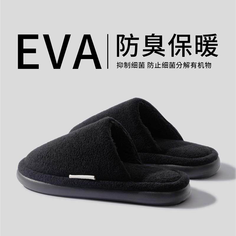 日本MUl棉拖鞋女冬简约居家用家居防滑保暖加绒情侣毛毛拖鞋新款