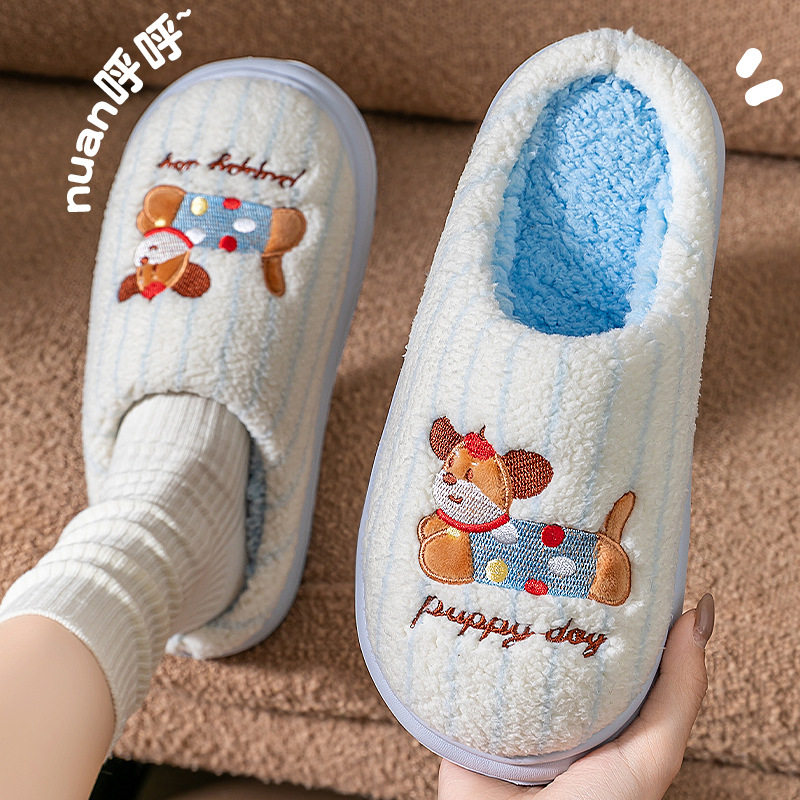 新款腊肠狗棉拖鞋室内居家加绒保暖情侣款条纹小狗