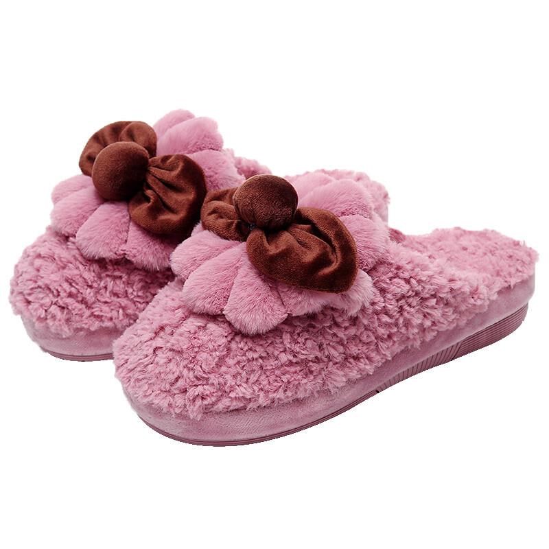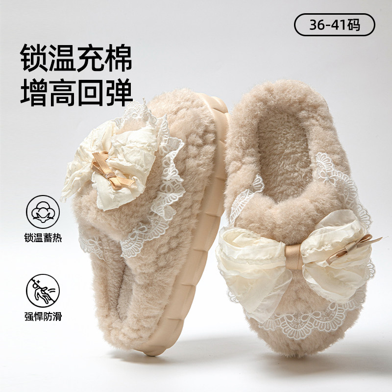 韩版甜美坡跟棉拖鞋女室内毛绒厚底居家保暖加绒可爱居家鞋防滑冬