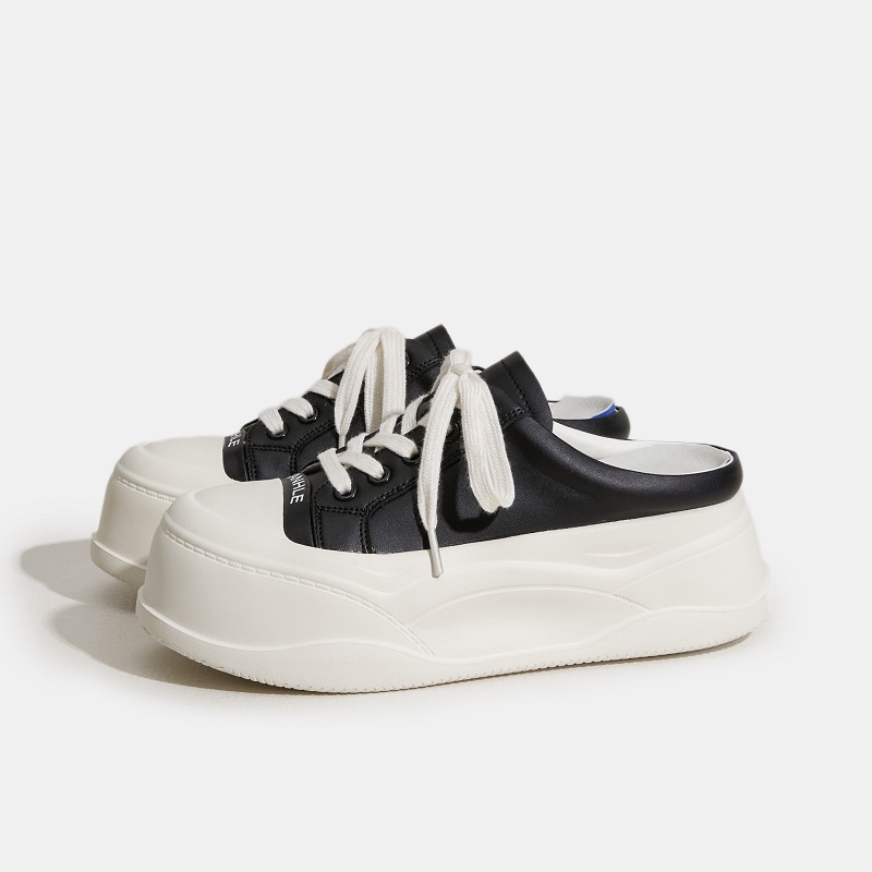 外贸尾货工厂特价厚底增高真皮半拖鞋女夏季外穿小白鞋休闲包头拖