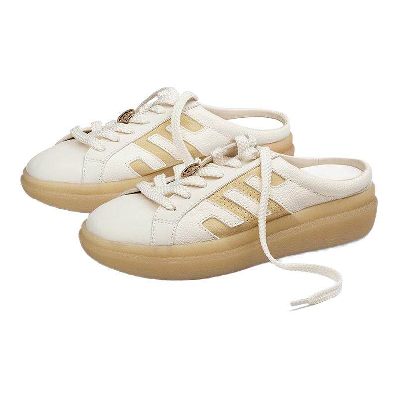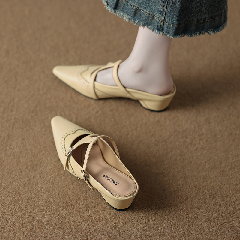 四起哥2026春款头层牛皮复古风真皮包头拖鞋女厚底穿半拖鞋穆勒鞋