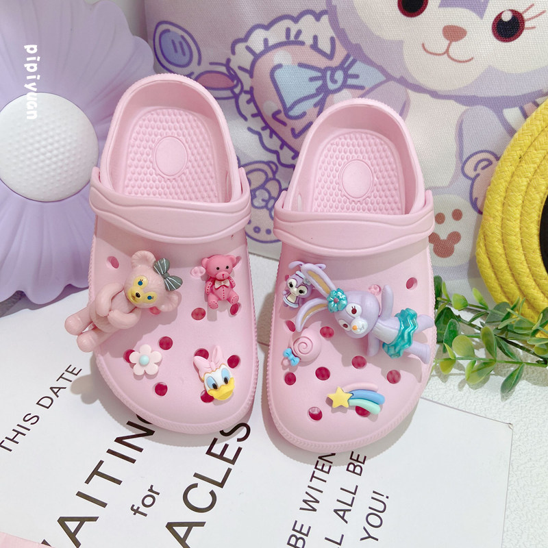 儿童拖鞋b卡通家居浴室防滑包头防撞软底洞洞鞋男拖鞋扦鞋脱鞋托