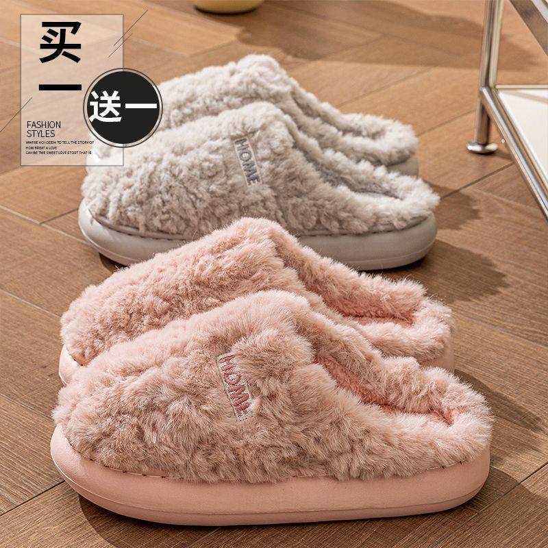 2026新款秋冬季棉拖鞋女室内家居家用防滑厚软底毛毛绒保暖情侣男