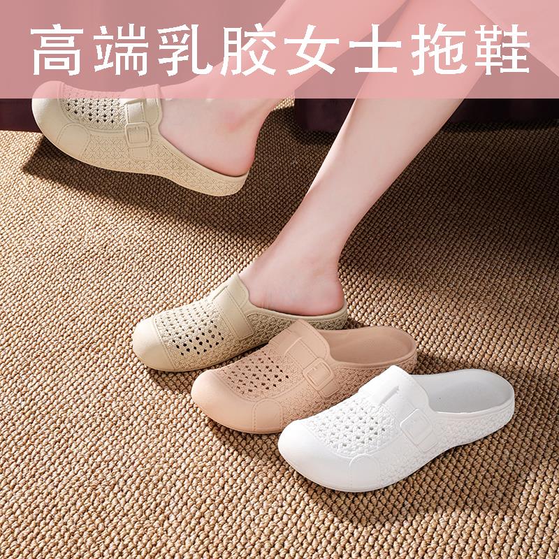乳胶包头拖鞋女2025新款夏季妈妈外穿软底洞洞鞋中老年女士凉拖鞋