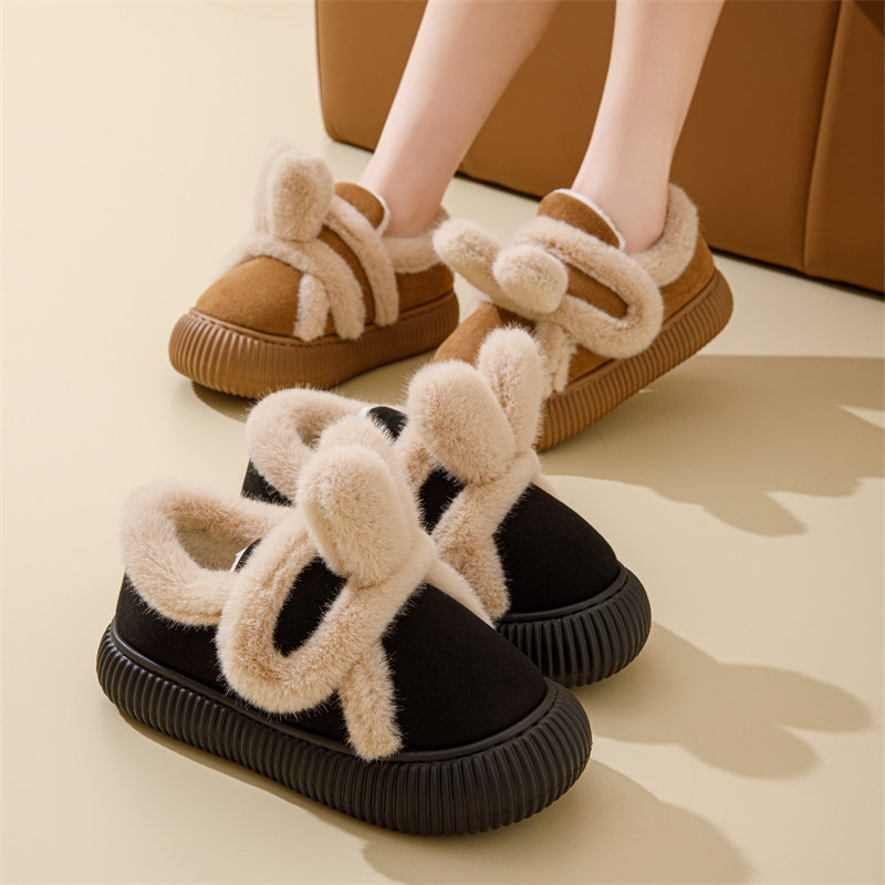 2024新款卡通兔耳朵包跟棉拖鞋女秋冬室内加绒保暖魔术贴棉拖鞋女