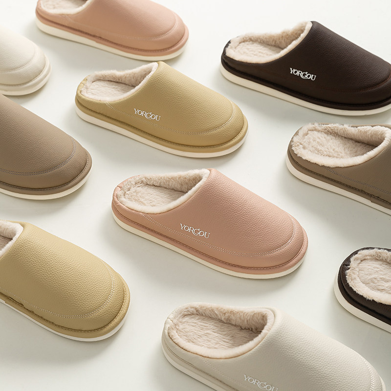 头层牛皮真皮拖鞋男冬季居家居室内棉拖鞋女毛毛防水冬情侣鞋冬款