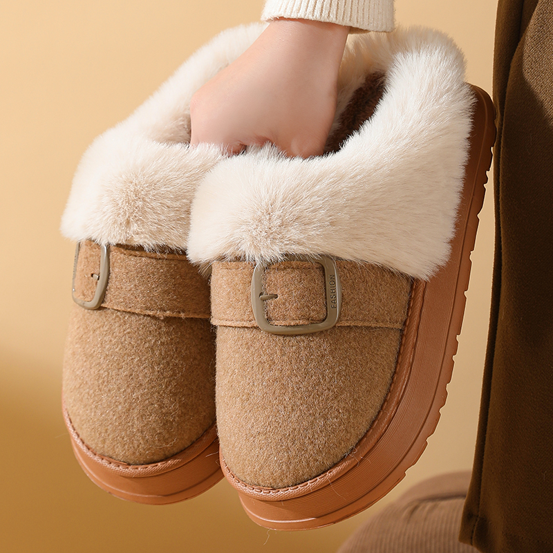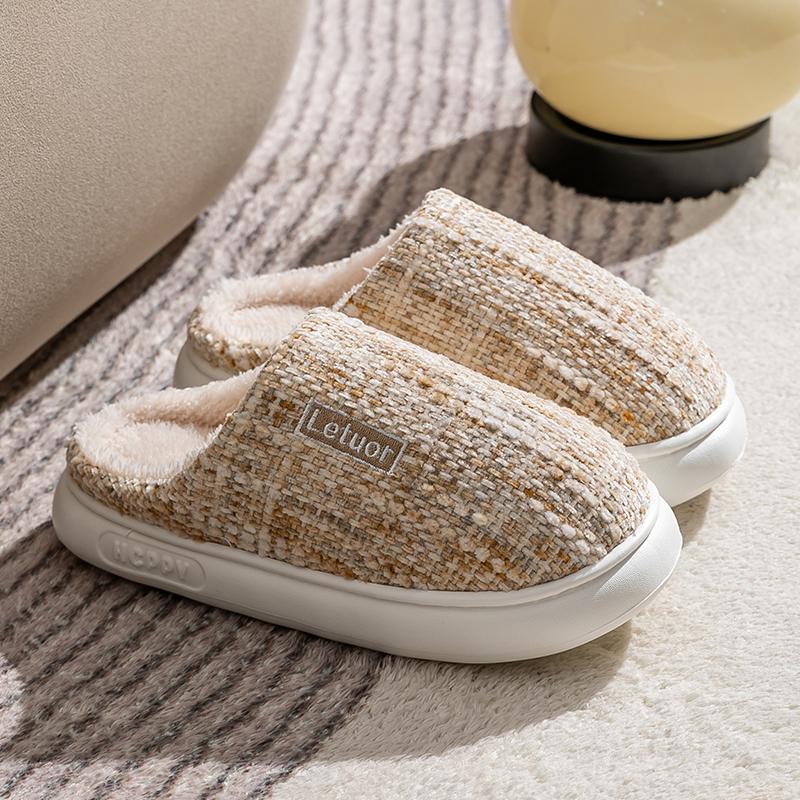 冬乐拖棉拖鞋男女加厚简约布面高档爆款情侣静音防臭毛毛拖鞋潮流