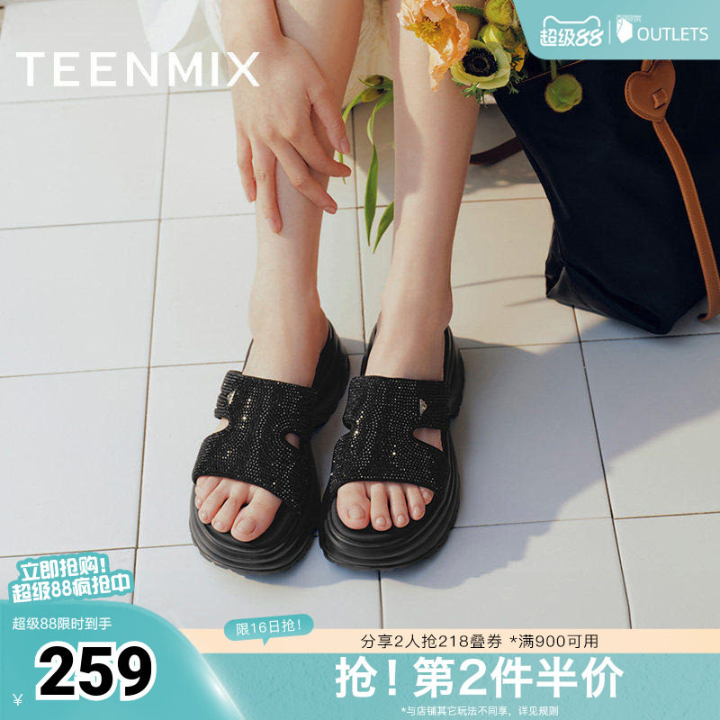TATA他她女鞋2026夏季新款一字拖简约百搭拖鞋高跟凉鞋XEK06BT6