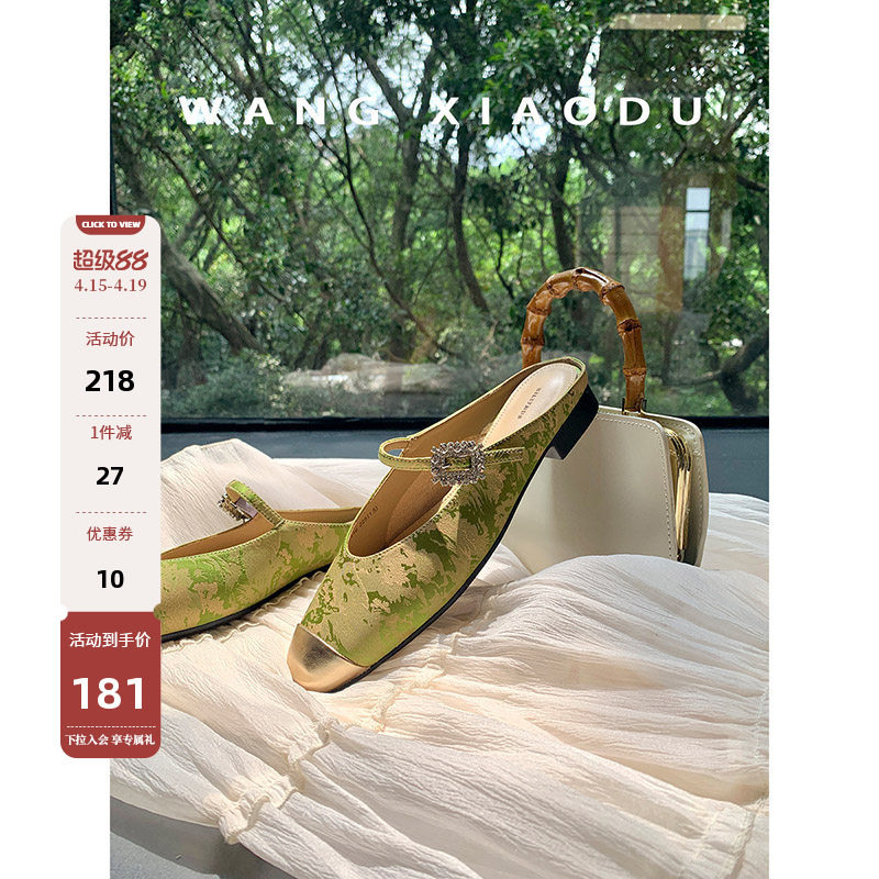 【王小毒】锦绣山河○中式国风包头拖鞋女外穿亮钻拼接玛丽珍女鞋