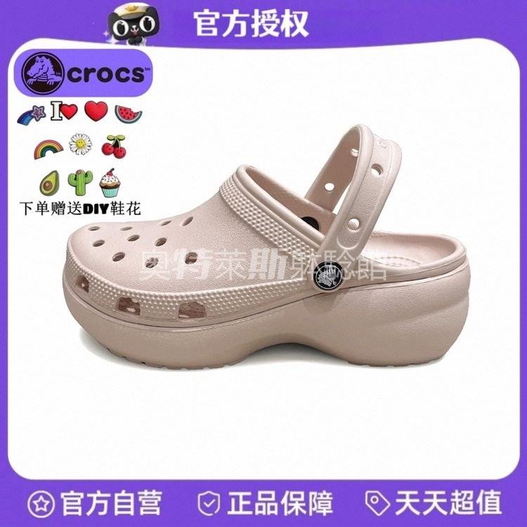 crocs女鞋新款卡骆驰洞洞鞋沙滩云朵彩扣厚底增高凉拖鞋213230