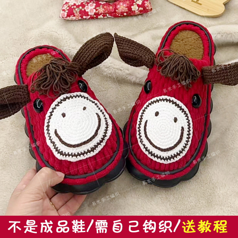 春秋时尚居家防滑地板毛线钩拖鞋纯手工毛线编织舒适保暖棉拖鞋男