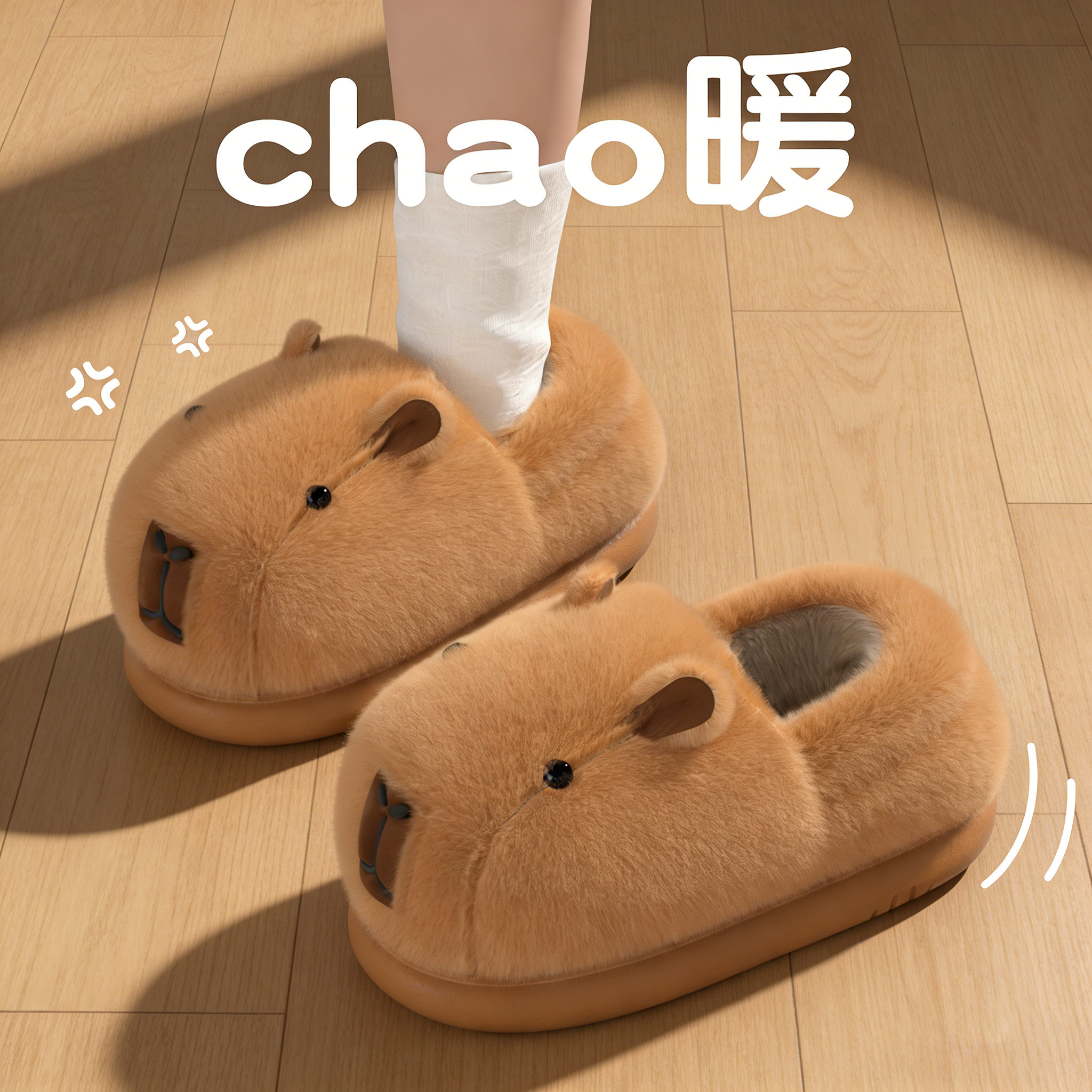 大嘴猴棉拖鞋冬男士新款加厚保暖柔软舒适毛毛全包跟厚底外穿棉鞋