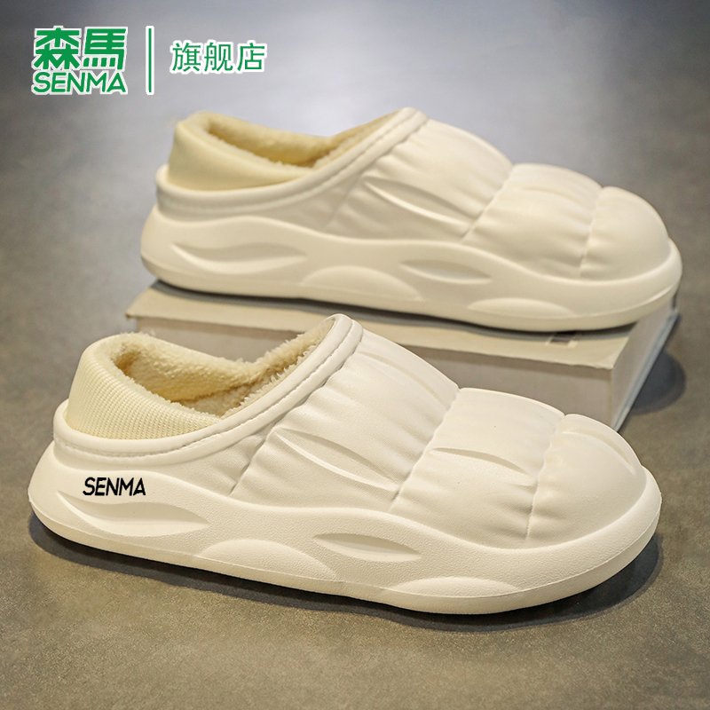 森马包头拖鞋男2025新款冬季居家防滑保暖情侣款外穿包跟毛绒棉鞋