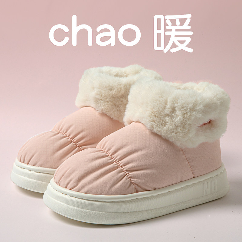 包跟棉拖鞋女秋冬季外穿2024新款厚底防水加绒保暖高帮雪地靴男冬
