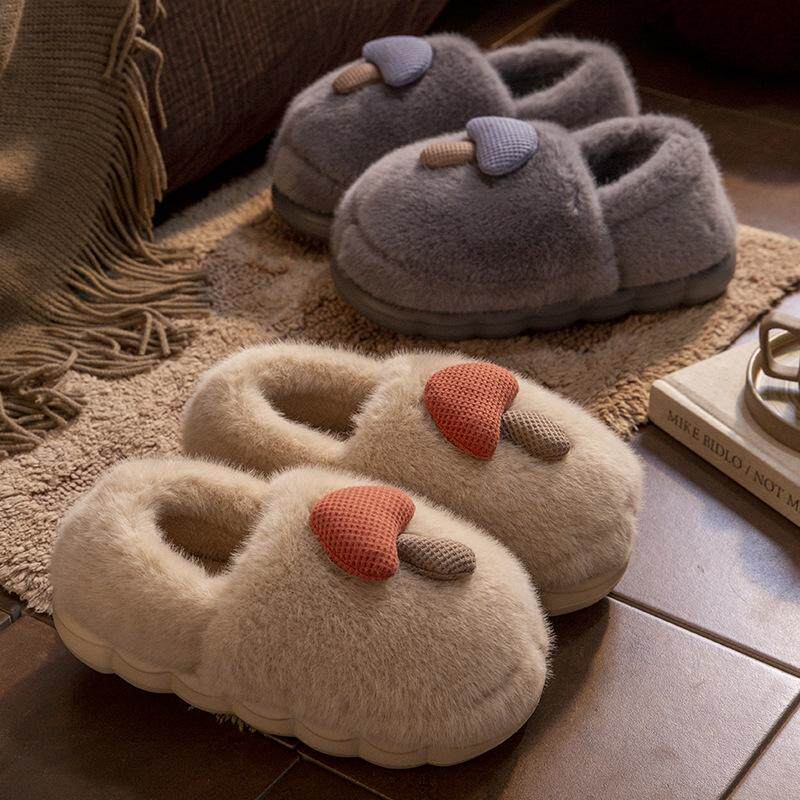 可爱蘑菇棉拖鞋女2024新款冬季毛绒保暖防滑厚底室内家用包头拖鞋