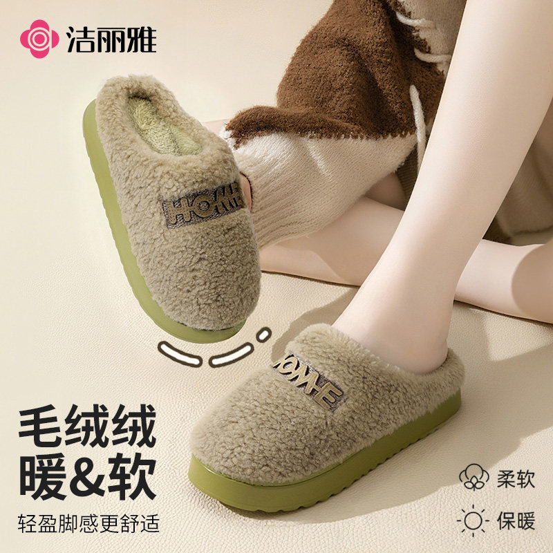 洁丽雅棉拖鞋女冬季室内家居保暖毛毛绒厚底防滑家用柔软情侣拖鞋