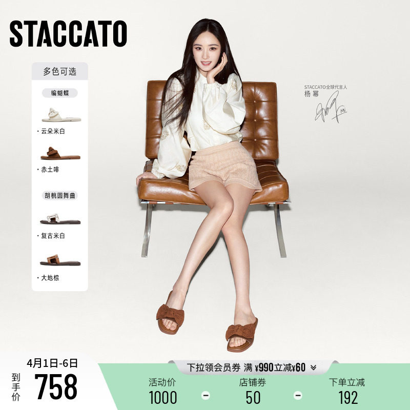 天美意一字拖编织度假平底拖鞋女外穿休闲凉鞋2025夏新款KT072BT5