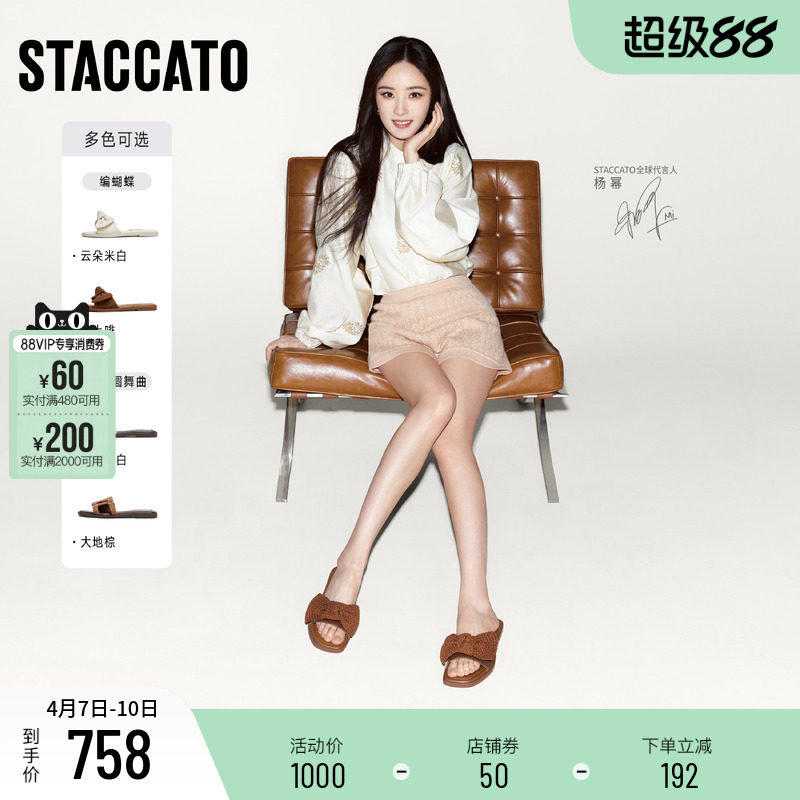 杨幂同款思加图编蝴蝶平底拖一字拖外穿凉拖鞋复古拖鞋EEQ19BT5