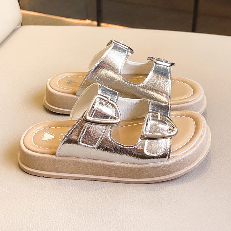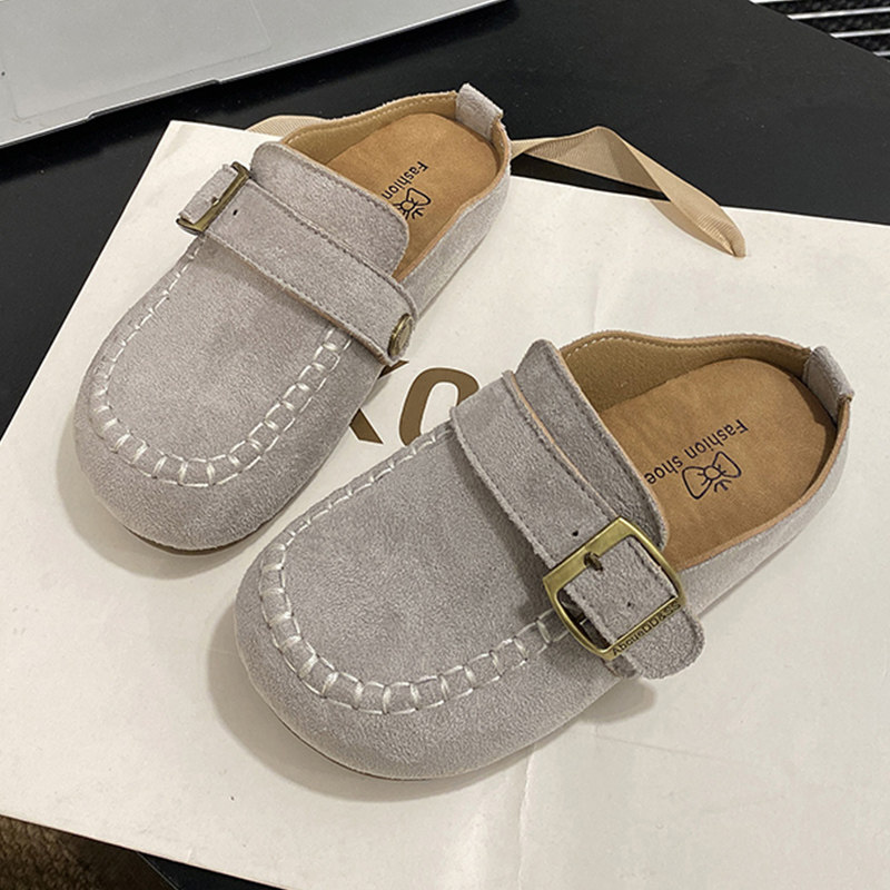 女童绒面软底拖鞋春秋新款男童厚底外穿勃肯鞋儿童舒适平底乐福鞋