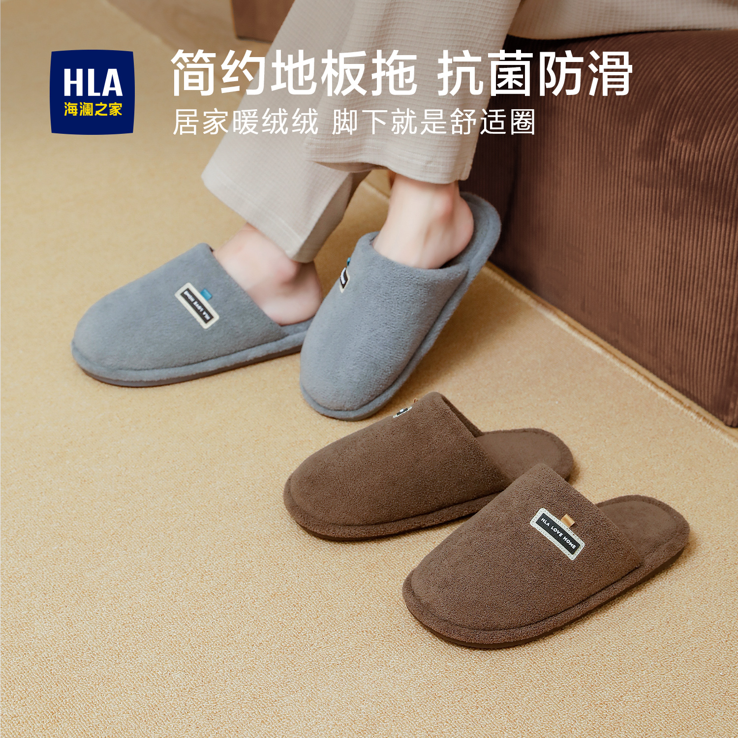 红豆秋冬棉拖鞋女款2025新款室内家居静音防滑保暖毛毛绒棉拖女冬