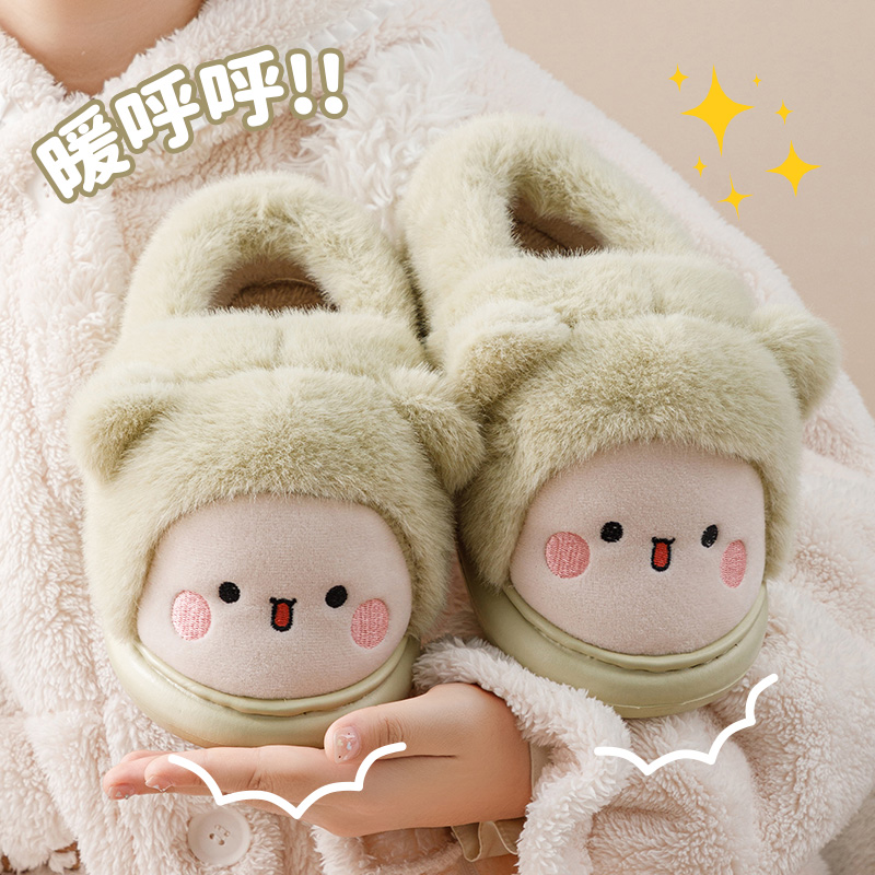 包跟棉拖鞋男女款秋冬季家居室内防滑家用可爱厚底小狗踩屎感拖鞋