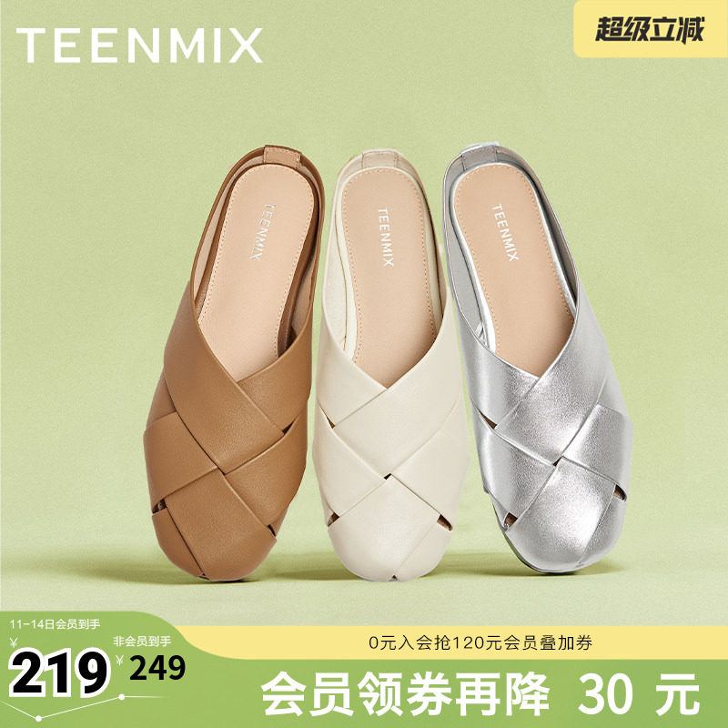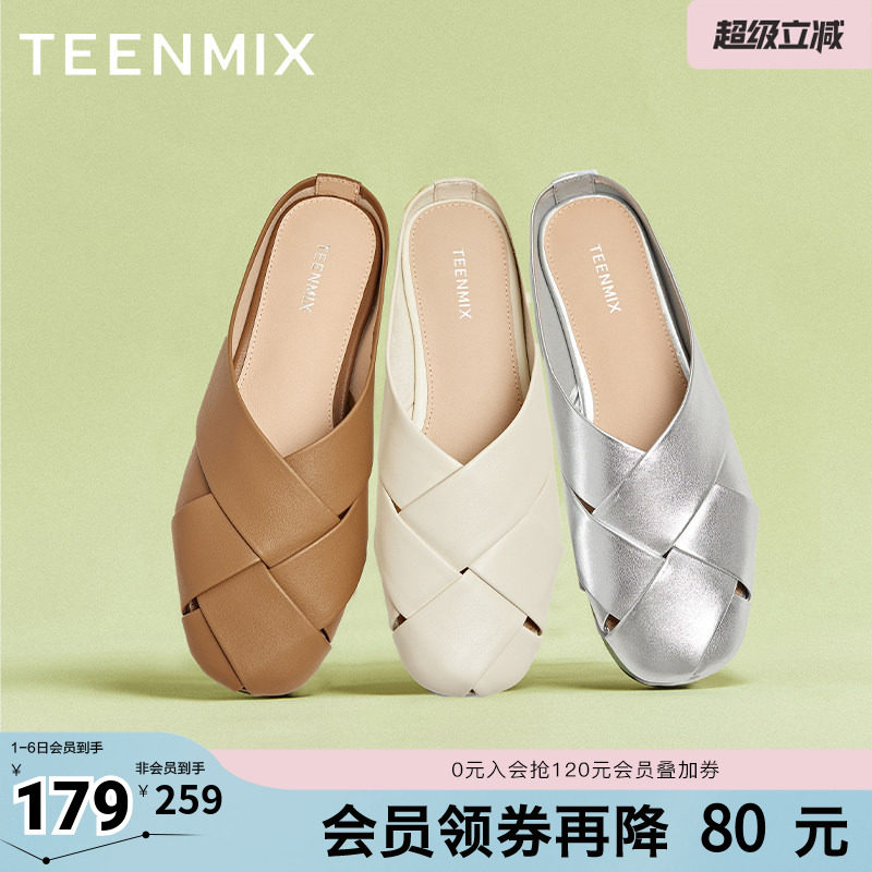 天美意平底罗马包头半拖鞋女外穿凉拖穆勒鞋夏季新款KT087BH5