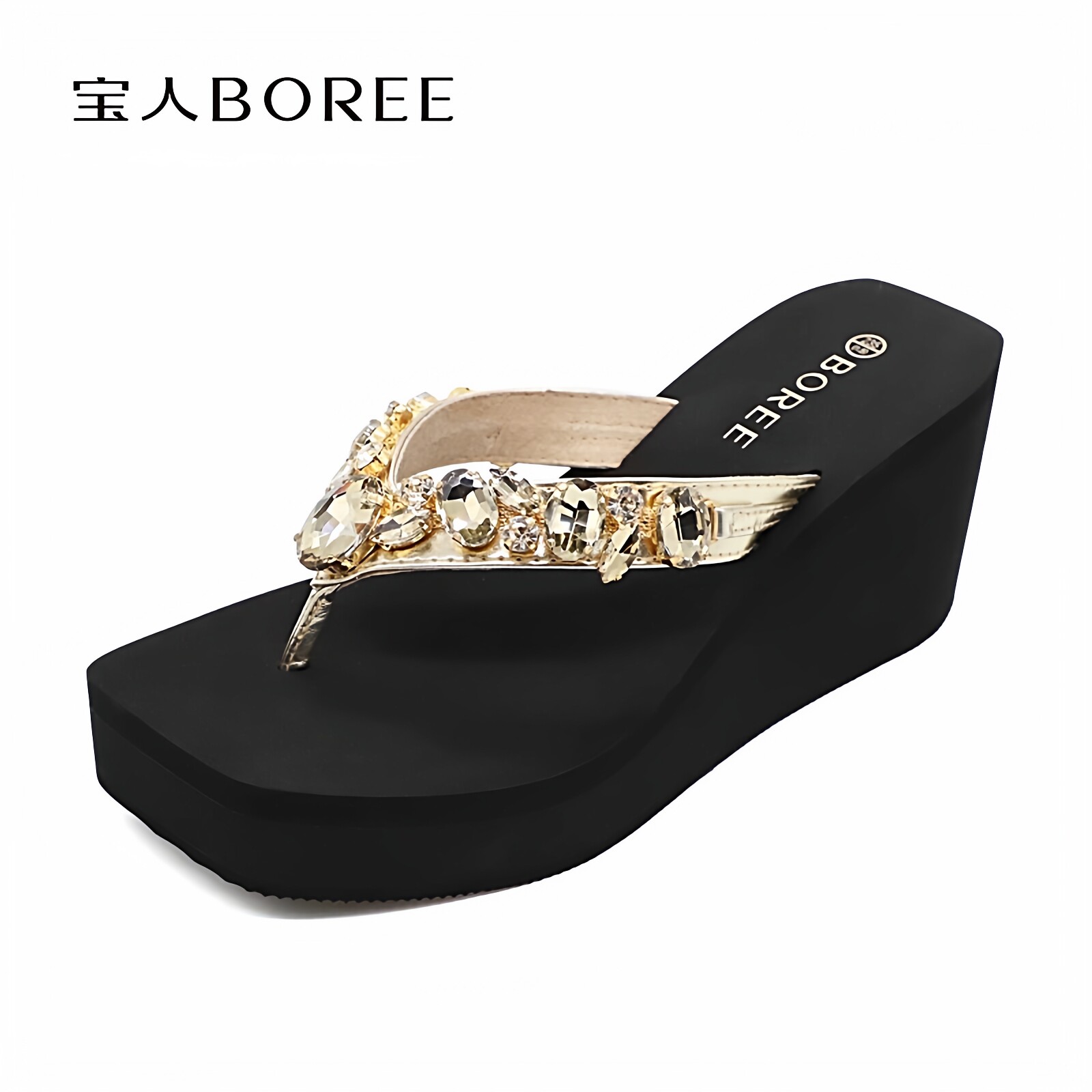 一字拖鞋女夏厚底松糕坡跟防滑时尚外穿高跟女士海边度假沙滩拖鞋