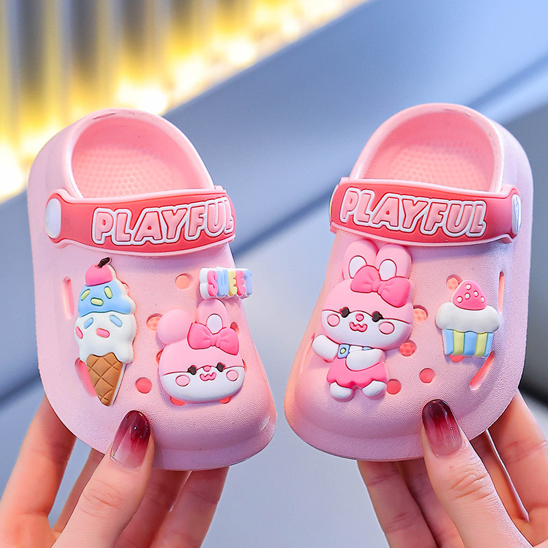 多巴胺洞洞鞋女童户外穿新款海边休闲可爱兔子女孩宝宝公主凉拖鞋