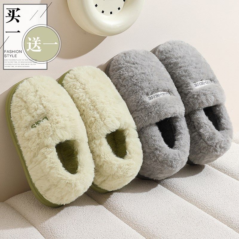 买1送1棉拖鞋女冬季包跟2024新款室内居家情侣一对毛绒保暖棉鞋男