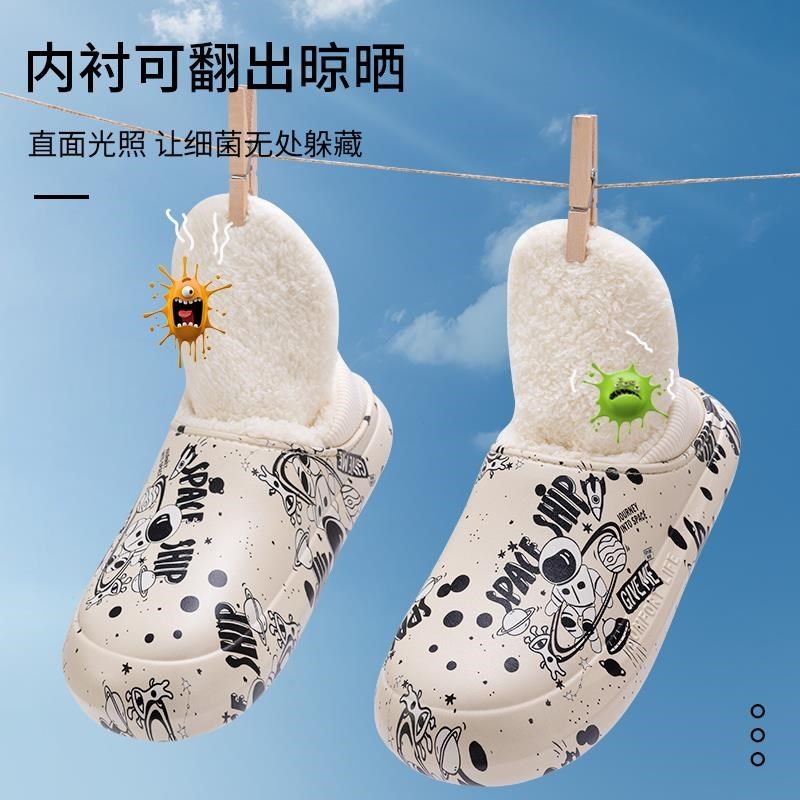 棉拖鞋女冬外穿防水防滑厚底包跟家用保暖加绒涂鸦棉鞋男士情侣鞋
