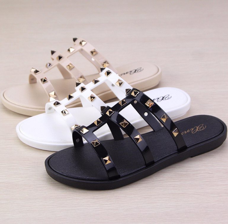新款水晶拖鞋女夏塑料沙滩平底鞋洗澡防滑防臭凉拖鞋室内浴室拖鞋