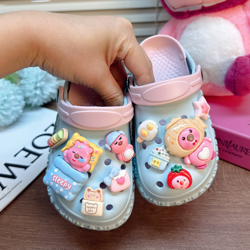 卡通儿童凉拖鞋女童夏季小童宝宝室内软底防滑卡通儿童包头洞洞鞋