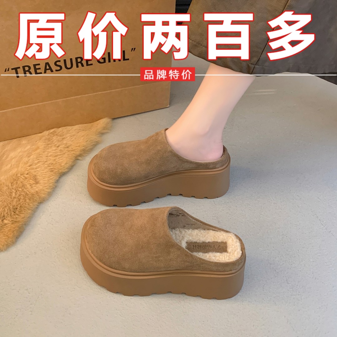 厚底勃肯鞋女包头半拖外穿2025秋冬新款一脚蹬懒人鞋加绒毛毛拖鞋