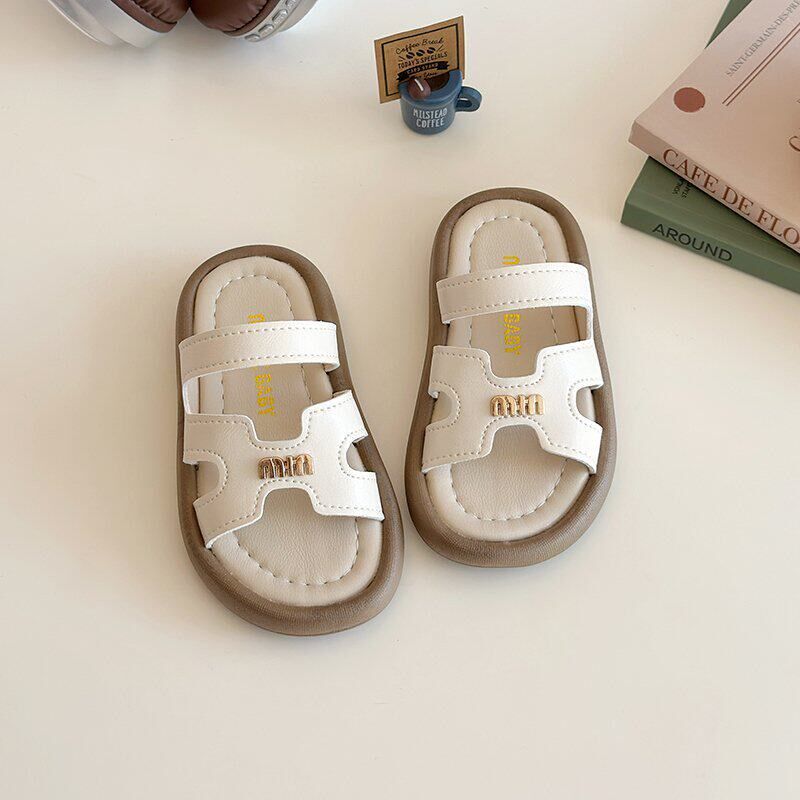 新品男女童简约复古凉拖鞋夏季2026新款宝宝软底防V滑沙滩鞋小童