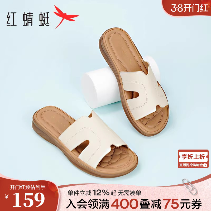 红蜻蜓妈妈凉拖鞋子夏季女鞋外穿真皮平底鞋女款软底舒适半拖凉鞋