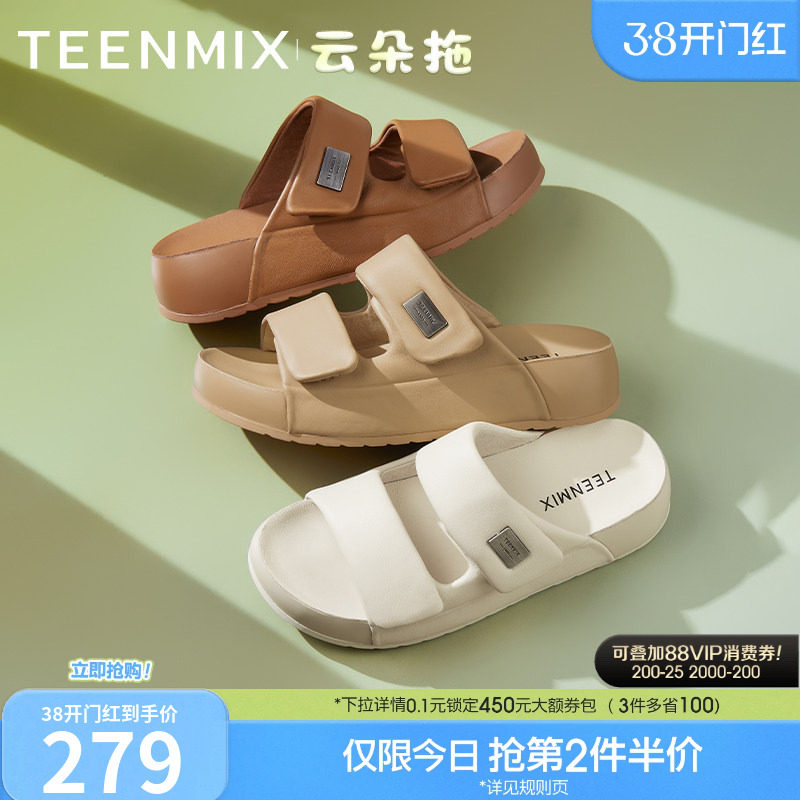 天美意云朵拖一字拖增高厚底拖鞋女外穿凉拖休闲凉鞋夏季新款