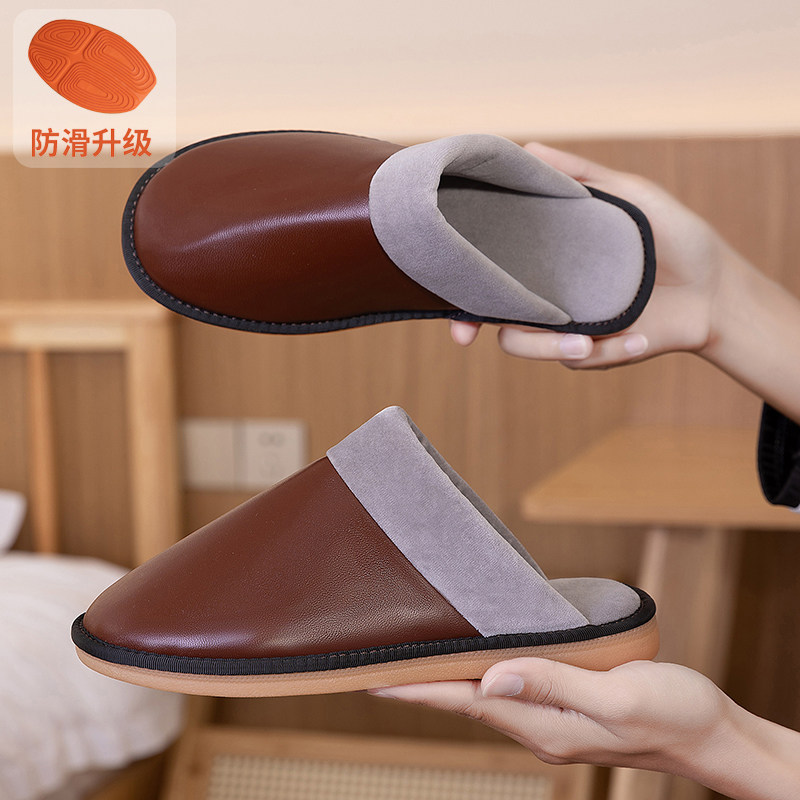 2双装地板静音棉拖鞋秋冬季女日式保暖室内家居家男防滑皮拖情侣