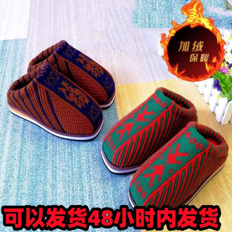 手工毛线拖鞋冬天加棉加厚防滑耐磨保暖婚嫁男女包跟编织棉拖成品